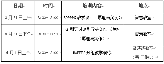 “有效教学的锦囊秘籍”教学工作坊围绕教学基本能力重点开展BOPPPS原理、课堂讨论等方面的培训,并分组进行微格演练。具体分组另行通知。