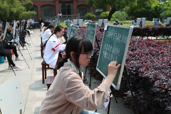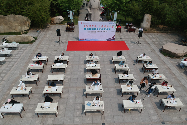 开幕式在配乐诗朗诵《劝学》中拉开序幕,到场的领导嘉宾用粉笔、黑板共同为本次活动提笔添彩。蒋云良宣布本次师范生文化艺术节正式开幕。随后进行的“三笔一画”基本功大比武活动,共有176位来自各个学院的师范生报名参加,再现了“百人现场书法”的场景,展现了师范生扎实的教学基本技能。师范生文化广场流动街景开设了扎染、制作香囊等一系列中华传统工艺活动,另设有“三笔一画”体验区,师生在互动中感受传统文化的魅力,了解中国传统手工艺之美。