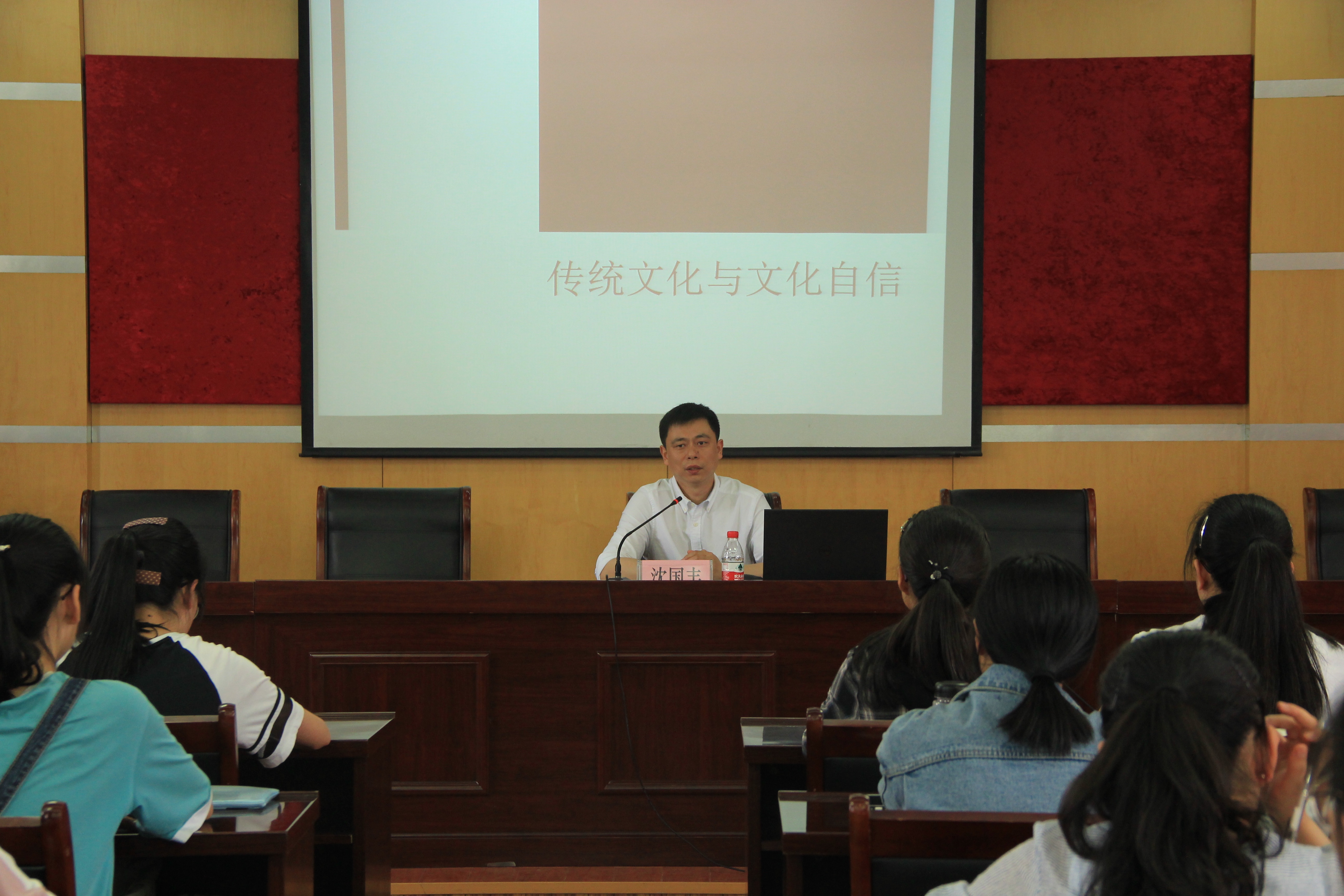 开学典礼结束后,紧接着就开始了党校第一讲。沈书记围绕着“和大学生谈文化自信”这个主题,从传统文化和文化自信上展开。首先,沈老师分析近代以来传统文化和文化自信的冲突,通过我国遭人侵略的事实以及近代以来传统文化面临的四次冲击,生动形象地阐明了我国历史文化上存在的不自信的现实,并从为什么要讲文化自信的角度告诉我们文化自信的重要性和必要性。紧接着,沈老师从弘扬中华优秀文化,树立文化自信的理想信念与目标出发,以对文化自觉、文化自信、文化自强的思考为借鉴,提出我们当代大学生需要理性的、全面的了解和分析传统文化,坚持文化自信,更要努力实现对中华优秀传统文化的创造性转化。最后沈老师对文化自信做出了高度的概括和总结,并对在场学生赋予了厚望。沈老师风趣且清晰的讲课方式,每一位学员都听得津津有味,党校第一课在笑声和掌声中结束了。