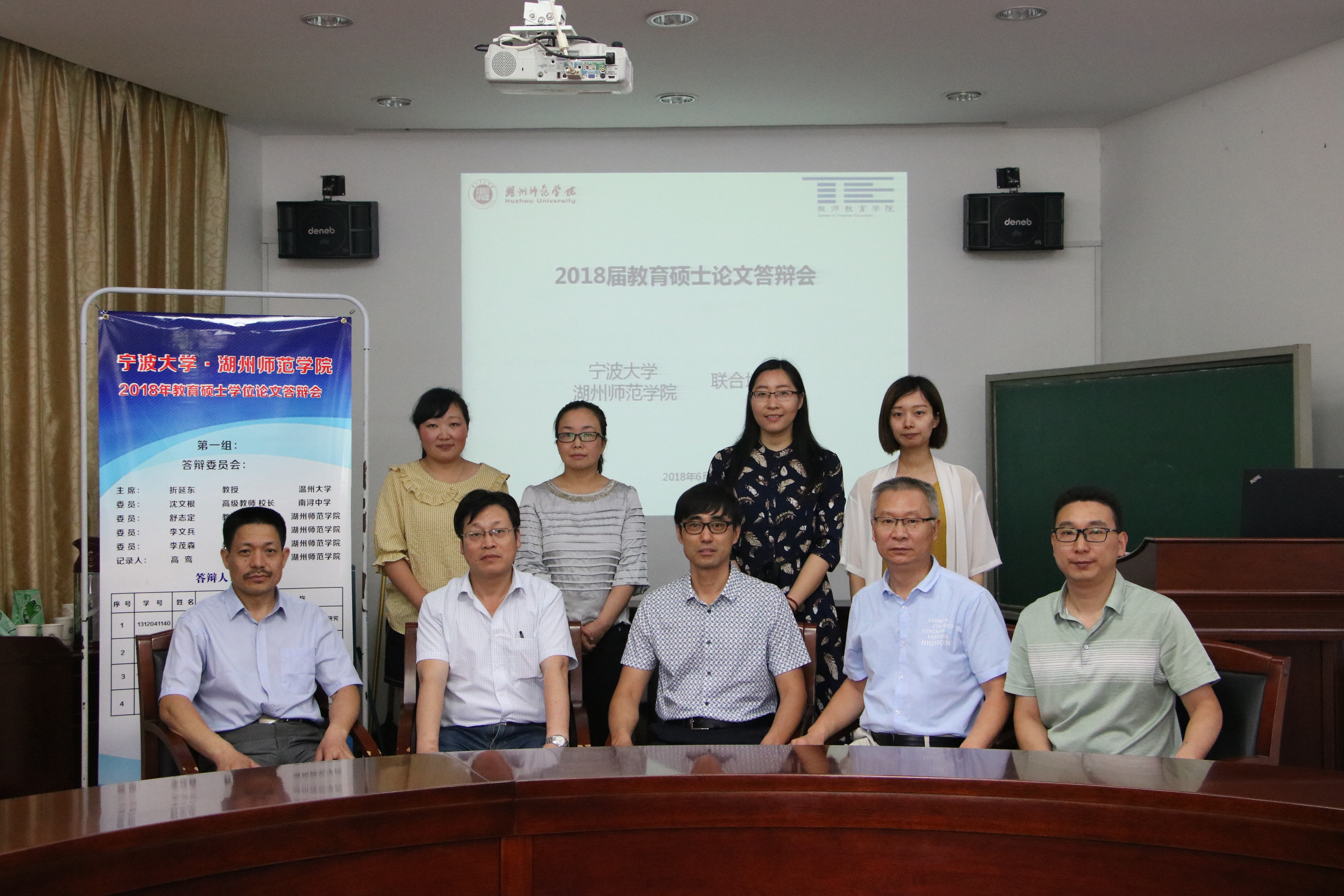 8名研究生参加此次硕士学位论文答辩,他们来自湖州市中小学,提交的答辩论文有《中学教师课程领导力研究----以浙江乡镇中学英语教师为例》、《中职教育中数学文化的教学内容研究及案例分析》、《农村小学高段学生自我教育能力的现状、问题与对策研究——以浙江省湖州市农村小学为例》、《初中数学拓展性课程的案例研究》、《地方学校基础教育国际化现状、问题和对策研究——以湖州市为例》等,论文选题紧密围绕地方中小学教育教学实践,通过硕士研究生课程学习、教育实践、论文写作,提高了中小学教师的学术素养与研究能力,有不少学生已入选湖州市各级名师工程,承担了各级各类研究课题,发表了学术论文。