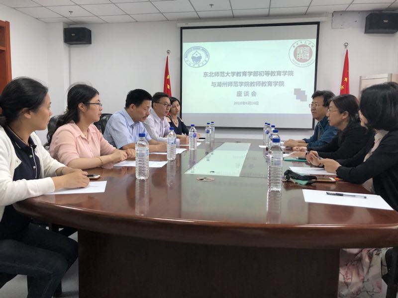 2018年6月16日,小学教育学系组织部分教师前往东北师范大学调研。东北师范大学小学教育专业是国家卓越教师立项建设项目,其建设成果获得国家级教学成果奖。调研组一行受到教育学部部长吕立杰教授、初等教育学院院长陈旭远教授和副院长解书的热情接待。吕部长代表学部对调研组到来表示热烈欢迎,介绍了学部在学科与学位点建设、人才培养等方面取得的成就。陈旭远教授整体介绍了东北师大小学教育专业的人才培养定位、课程设置、实践教学、U-G-S和U-S人才培养模式等的基本情况,并对我院小学教育方向的专业硕士点建设提出了宝贵的建议;解书副院长则具体介绍了如何开展小学教育专业的“经常性见习”,以及“师范生技能训练营”、“导师制”等具体做法。