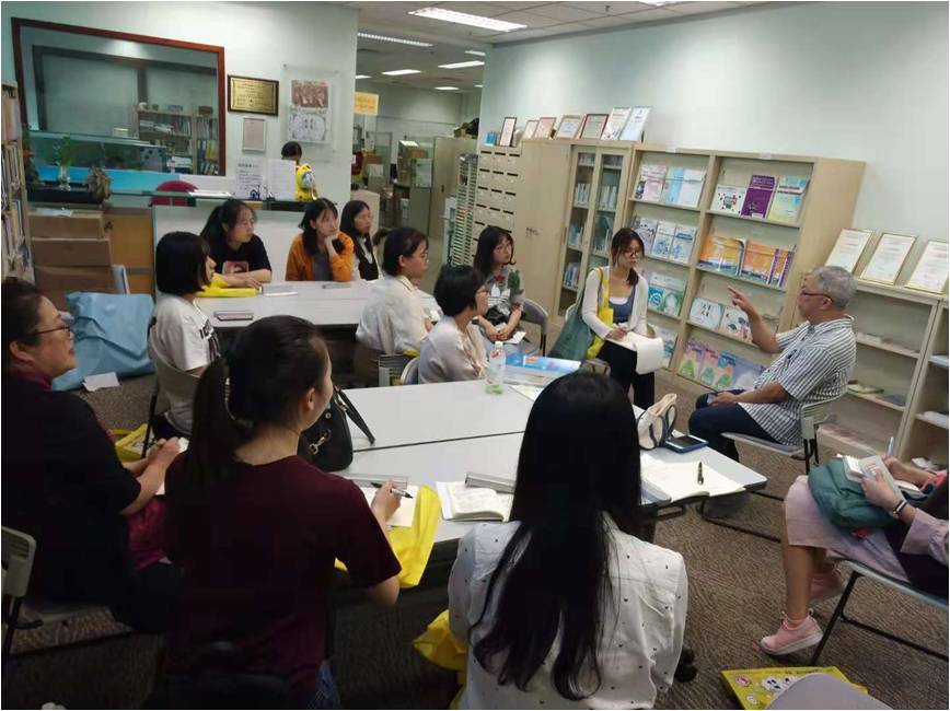 9点15分到达学校,校长林淑芳女士会同校领导热情接待大家。学校特意安排了同学们观摩由教务主任黄嘉璧老师亲自执教的五年级的特色英语课。这节课旨在引导学生理解熟语和谚语的意思,并学会区分熟语和谚语。课堂的导入是让学生回答自己预习过的熟语和谚语,并请其余同学与老师一起对他回答的正确性作出评价,正确的就进行表扬,错误的就及时指出,让每个同学都能参与到课堂中来,听讲角色的扮演十分鲜明到位。写出完整的熟语和谚语后,老师请同学起来解释每一句熟语和谚语的意思,再让同学进行猜卡片的游戏。一组同学合作表演卡片上对应的话让台下的同学猜,每组同学分别展示,既锻炼了他们的合作能力,又加深了他们对这些句子的理解。最后老师让学生挑选自己觉得最好的句子,给了学生展现自我的机会,将整堂课推向了高潮。这节课充分地展示了英皇小学的教育特色,高参与、正面鼓励、合作学习、高阶思维、自主学习、合作学习的课程理念与课程特色。10:00到10:40分,李淑芬校长、黄嘉璧主任、瞿瑞芬主任和陈锦康主任向我们交流团介绍了英皇书院同学会小学的历史发展,办学宗旨,师资现状及课程特色,其中着重介绍了该学校的四大关键项目,即“从阅读中学习“资讯科技互动学习”“跨学科专题研讨”和“德育及公民教育”,加深了我们对英皇书院同学会小学第二校的理解。10点40到11点为自主互动阶段,学生就当前小学教育领域中的现状与问题、新技术媒体下小学课程模式的开发与利用等方面进行提问与交流。11:00到11:15英皇书院的教师们带领着参访团参观了该校的场地与设备,最后双方交换了礼物,合影留念,结束了此次友好参访。