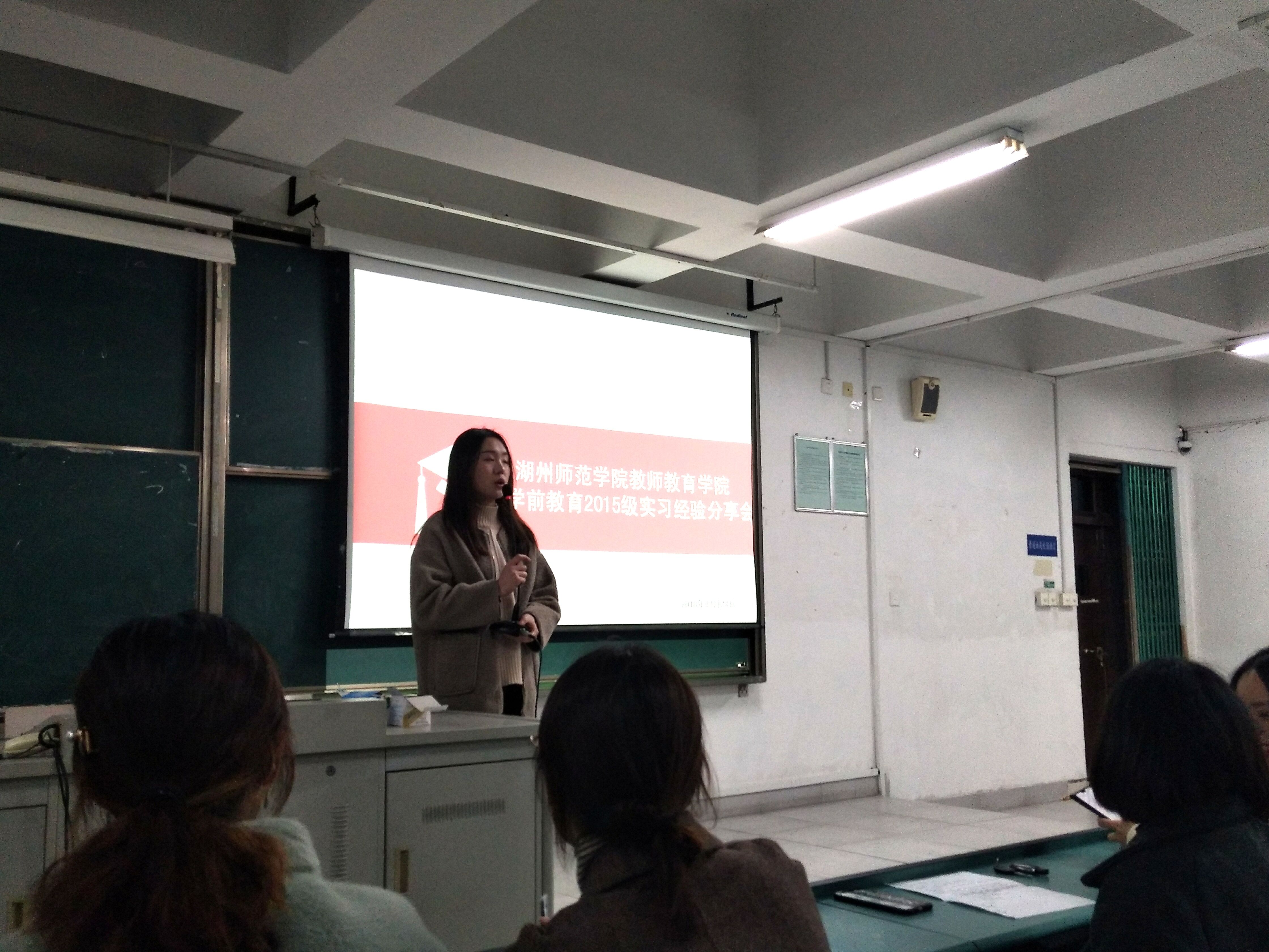 2018年 12月23日晚18:30,学前教育专业“小荷综艺团”社团组织js3845金沙线路学前教育2015级实习经验分享会,在12幢教学楼215教室组织卢丹凤等6名实习返校生与2016、2017和2018级学前教育专业学生做了精彩深刻的实习经验交流与分享。