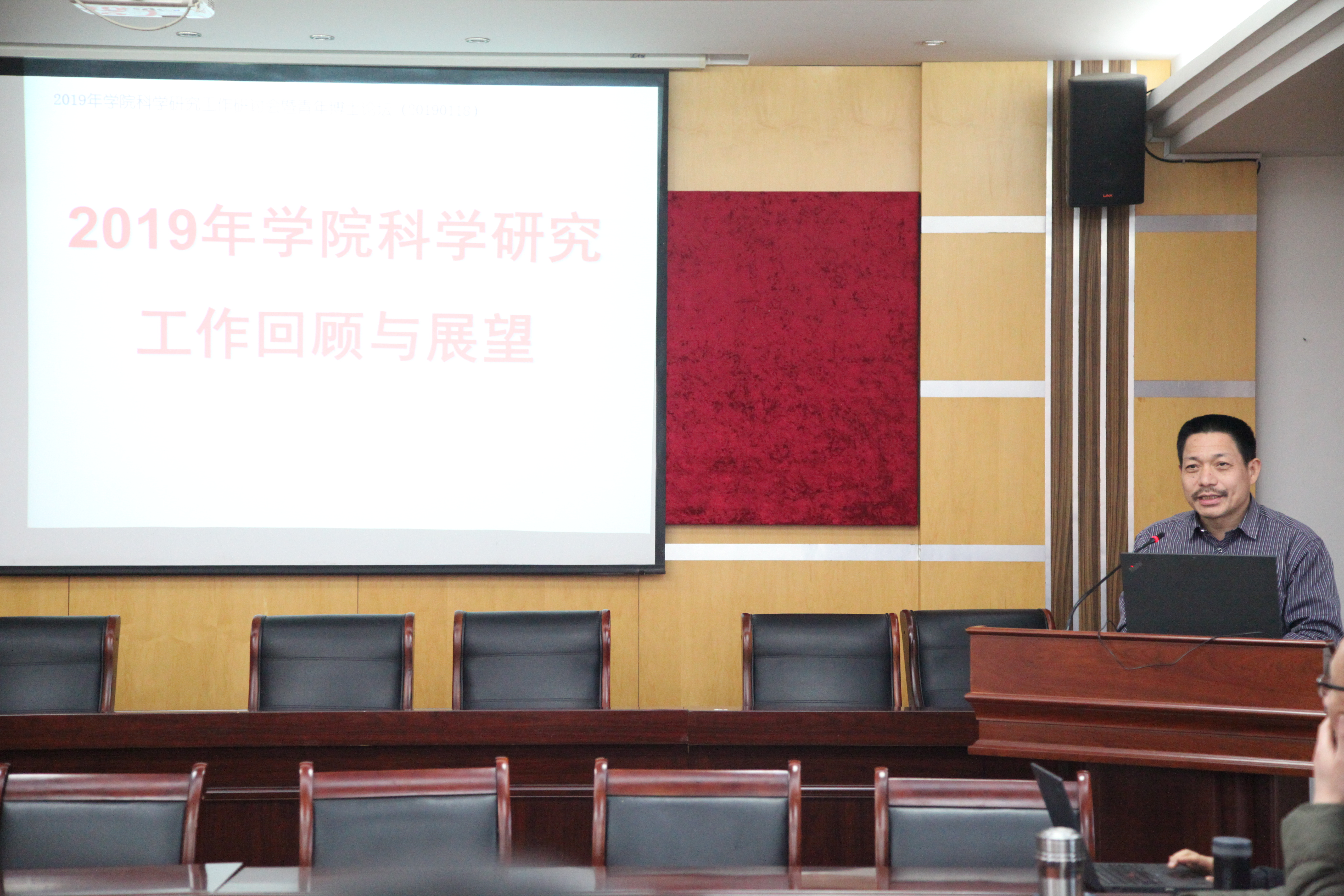舒院长指出学院近几年科研工作发展态势良好、强基固本、稳中有升。对2018年的科学研究工作,他用“12345”给以总结。他说2018年坚持立德树人教育全院师生,以培育时代儒师为愿景,启动了一种基于中国文化立场的教师教育文化塑造工作;完成了教育学一级学科硕士学位点和教育硕士学位点等两个学位点获批工作;新增10名海内外著名高校毕业的博士学位教师、25名硕士研究生导师、17名国际研究生等三支队伍;创造了3项国家基金、省领导批示的智库成果、校地合作先进集体、当代儒师培育书系出版等四项成果;推进了教学与科研协同管理、成果导向科研管理、柔性学术假为代表的教师培养管理、研究中心管理、学位点管理等五大类管理内容为核心的学院管理制度的完善。展望新一年的科研工作,基本要求是要有理想、有恒心;入门要正,立志要高;独立研究,更要合作;潜心问学,更要广交好友。