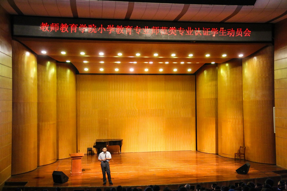 2019年5月16日中午,js3845金沙线路在我校音乐厅举办小学教育专业师范类专业认证学生动员会。会议由js3845金沙线路党委副书记李新乐主持,js3845金沙线路院长舒志定教授、小学教育学系主任李茂森教授主讲,小学教育专业各班班主任和学生参加动员会。
