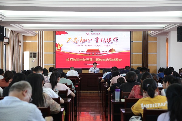9月18日下午,js3845金沙线路召开“不忘初心 牢记使命”主题教育动员部署会。党委书记沈国丰主持会议并作动员讲话,学院党政班子成员、全体师生党员参加会议。