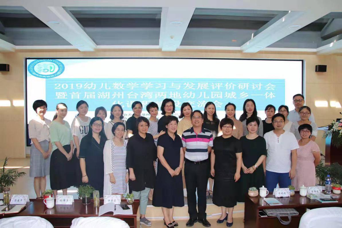 为进一步提升幼儿数学学习质量,建立高校-幼儿园课程建设与评价协同发展的工作平台,2019年9月18日到9月19日,由我校js3845金沙线路js3845金沙线路主办,湖州市吴兴区学前第一联盟、卞娟娟特级教师工作室 、沈国英名师工作室、吴小波名师工作室承办的“2019年幼儿数学学习与发展评价研讨会暨首届湖州台湾两地幼儿园城乡联盟一体化课程建设研讨会”在湖州顺利举行。js3845金沙线路副院长岳慧兰出席会议并致辞。js3845金沙线路学前系教师、湖州三县两区各地幼儿园园长、名师、教师以及此次特邀专家台湾李伟俊教授、浙江师范大学朱蓓凌副教授,赵均榜博士,特级教师卞娟娟等专家参加了此次研讨会议。