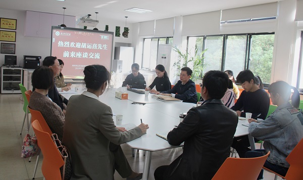 2019年10月29日,胡瑗先生后人胡运熹先生及夫人陈鸣家女士在我校对外联络处处长范丽峰陪同下到我院参观并进行座谈交流。出席座谈会的有js3845金沙线路党委书记沈国丰、党委副书记李新乐、教师及小学教育专业的8位学生代表。