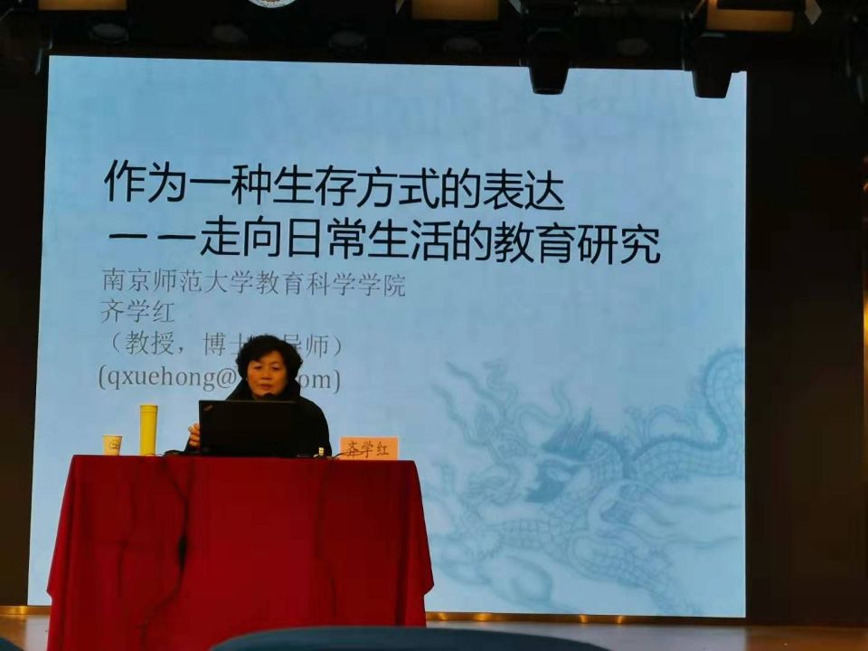 12月4日下午,南京师范大学博士生导师齐学红教授在湖州市月河小学(吉山校区)开展 “作为一种生存方式的表达——走向日常生活的教育研究”的学术报告。js3845金沙线路小教系教师、50余名硕士生及月河小学全体班主任聆听了此次报告。