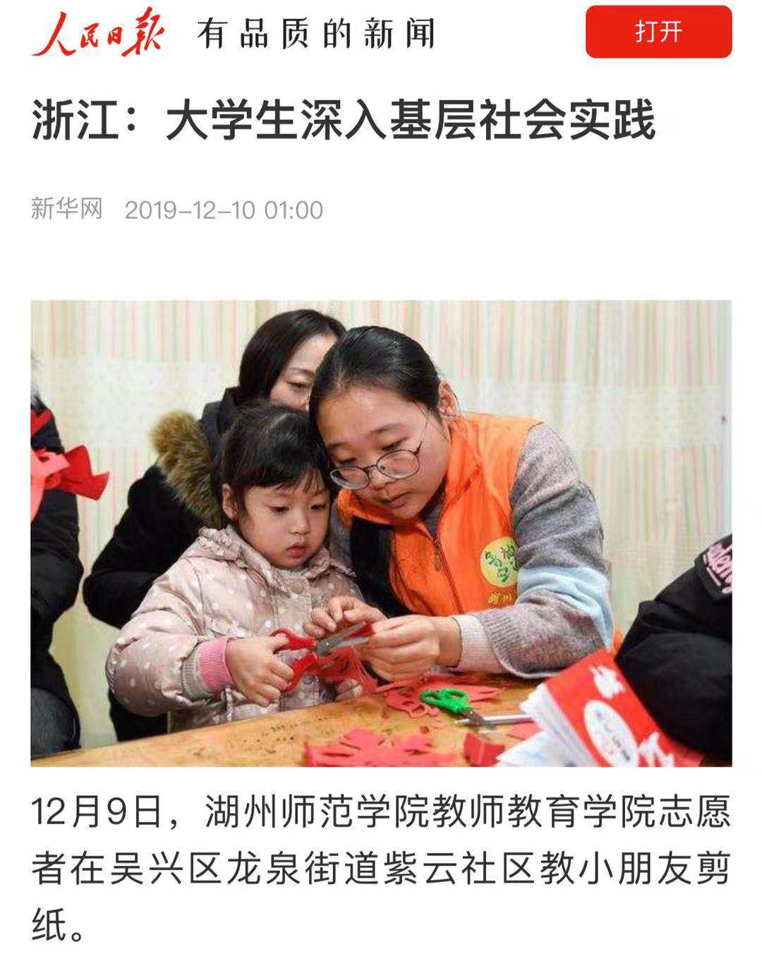 js3845金沙线路志愿者依托“青柚空间”校外德育工作站深入基层深入群众开展各项志愿活动,弘扬传统文化,践行青春使命。12月9日志愿者在吴兴区龙泉街道紫云社区教小朋友剪纸、汉服展示表演等优秀传统文化活动受到人民日报、人民网报道。