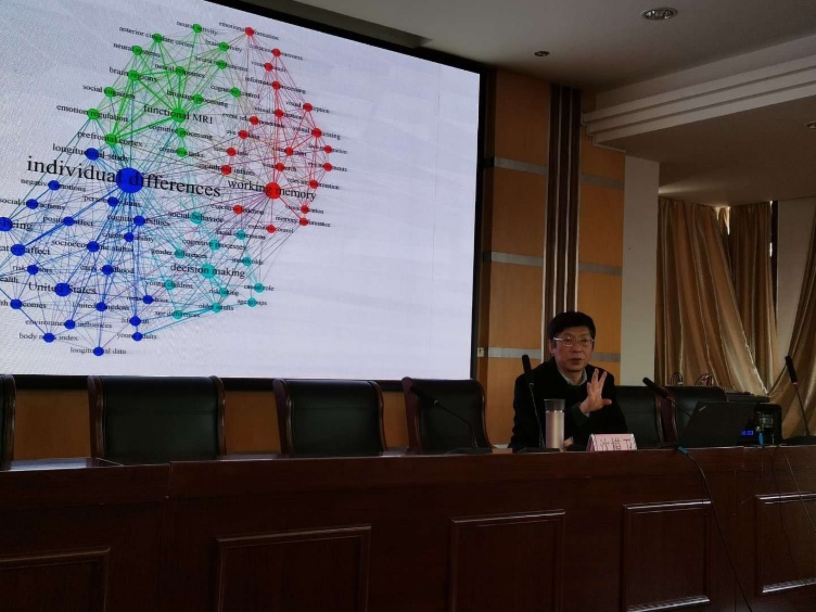 上午近两个小时的学术报告,沈模卫教授为大家带来了十分精彩的演讲。报告以探讨心理学科的发展趋势为主要内容,一方面分析了心理学研究的历史动态,另一方面为心理学未来发展提出了展望。沈模卫教授指出,想要考察心理学发展的脉络,研究综述和文献计量学的传统方法均有缺陷,不利于把握心理科学内涵发展的历史演变过程。所以,他们的研究团队首次采用语料库工具和共现网络可视化工具对美国心理科学协会旗舰刊物《Psychological Science》的文献进行了计量分析。结果发现,近30年来,国际心理学研究始终以基本认知过程为核心范畴,并广泛结合神经科学和脑科学研究的前沿技术和方法,不断深化和拓展研究变量的范围和层次。这对于未来心理学研究的方向具有指导意义。其一,延续以往的趋势,未来心理学研究必然继续聚焦于本学科的核心理论问题。其二,对心理过程的深入探索,要求对其提供具体的理论描述,因此,认知建模等技术将得到更广泛应用。其三,心理学研究将更生态化,并与相关学科(如,人工智能)深入融合,这既是机遇也是挑战。