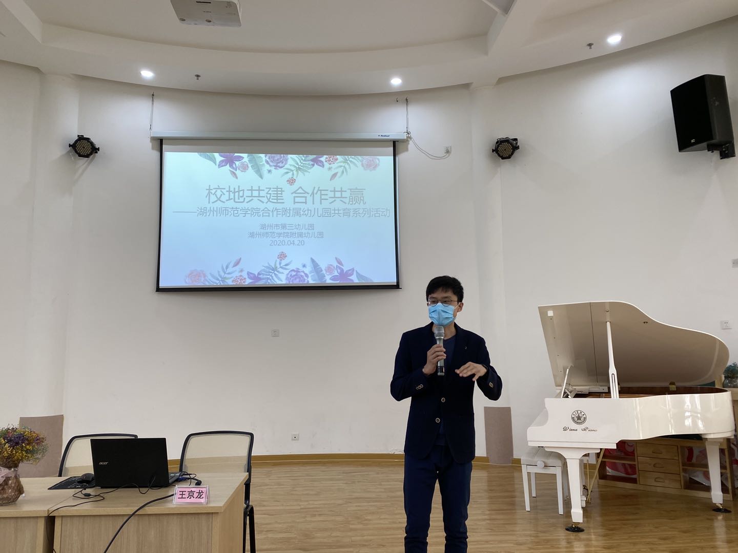 4月20日,js3845金沙线路学前教育系王京龙博士受js3845金沙线路附属幼儿园(湖州第三幼儿园)之邀,在怡和家园园区展开“奥尔夫音乐教育内涵与实践”的交流研讨。js3845金沙线路教学副院长岳慧兰,附属幼儿园(湖州第三幼儿园)园长蒋静波及其全体教师共同参加本次活动。