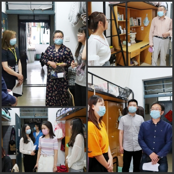 2020年5月13日下午,为深入了解学生思想动态,进一步排查学生宿舍安全隐患,营造良好的校园住宿环境,教师教育学院学院副院长(主持工作)刘世清老师、党委副书记(主持工作)何阅雄老师、副院长岳慧兰老师、党委副书记李新乐老师以及学院全体辅导员老师,来到学生宿舍进行随机走访。