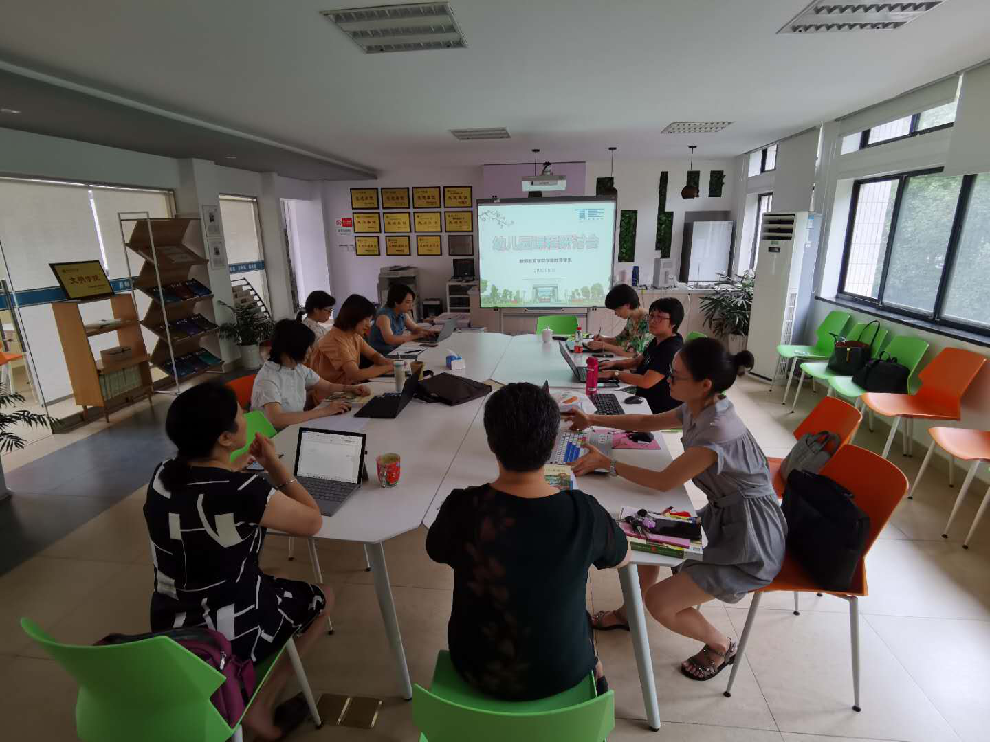 为了增强学前教育学系教师对幼儿园课程的理解,促进地方和高校的互联互通。2020年8月10日,学前教育系邀请南浔区实验幼儿园李芳副园长和练市镇中心幼儿园韩琼副园长,共同开展了“幼儿园课程研讨交流会”。交流会在js3845金沙线路智慧教室举行,通过线上线下混合模式,学前教育学系全体教师参与了此次交流会,会议由学前教育学系系主任王云霞主持。