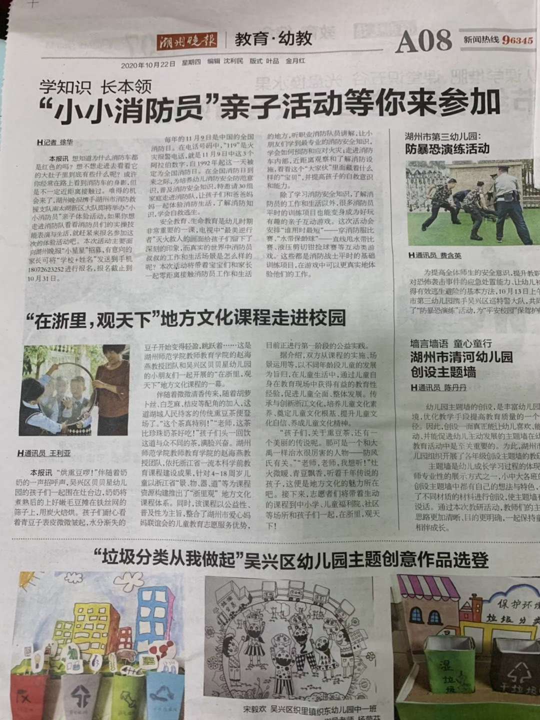2020年10月15日,南太湖号以《“在浙里”观天下,这门新课程很受孩子欢迎》为题,报道js3845金沙线路赵海燕教授的服务地方。链接如下: http://share.plus.hugd.com/folder54/folder55/folder109/folder110/2020-10-15/stvIC76VAhQcynwu.html?_hgOutLink=news 2020年10月22日,湖州晚报也报道了赵教授的事迹。