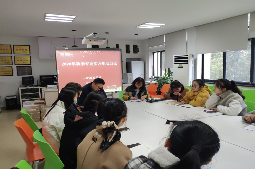 2020年12月7日下午,小学教育学系2017级专业实习组长交流会在智慧教室召开,18名实习组长、小教系主任李茂森老师、副主任王燕红、张蓓蓓老师参加了会议。