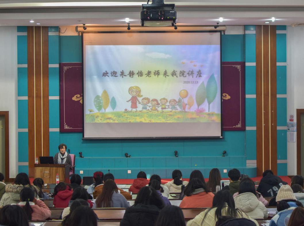 2020年12月13日下午,浙江省首位幼教特级教师、湖州市教委教研员、前湖州市第一幼儿园园长朱静怡老师应邀为js3845金沙线路学前教育系师生作专题讲座。js3845金沙线路部分教师以及100多名学前专业学生聆听了本次讲座。js3845金沙线路李静老师主持本次讲座活动。