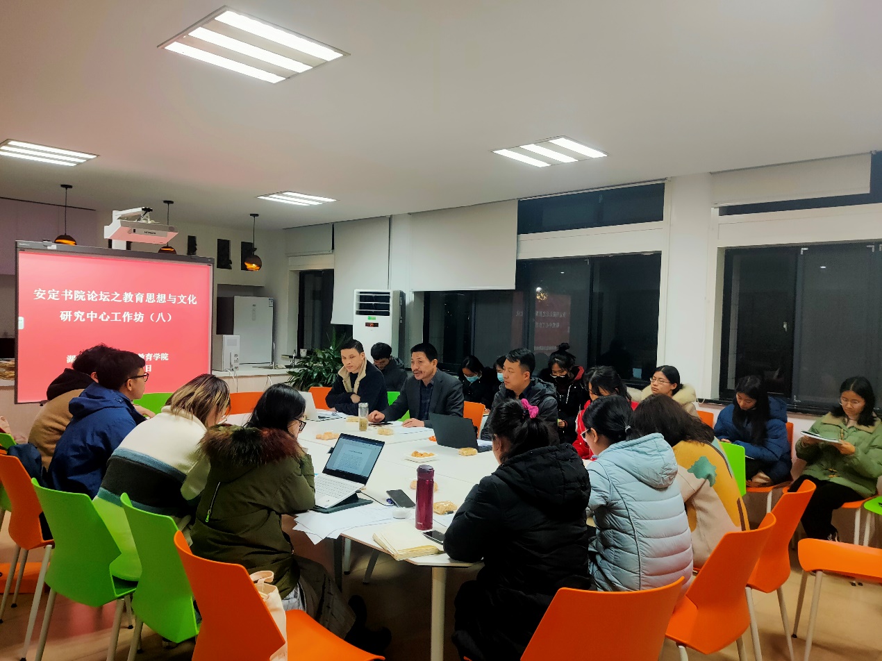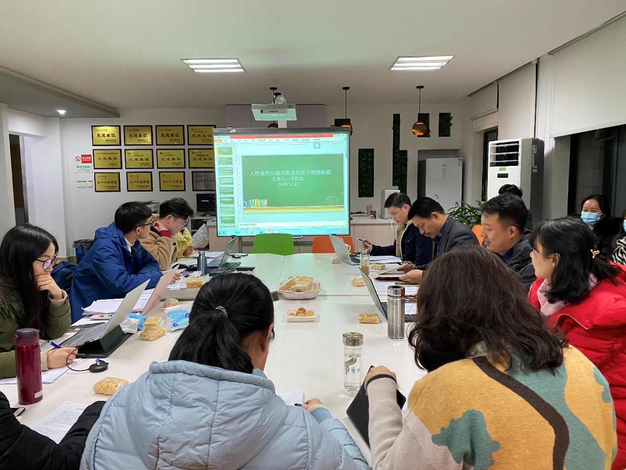 12月17日晚18:30,教育思想与文化研究中心工作坊第八期学术活动在10-211召开。活动主题是“人性观何以成为教育活动开展的前提”。中心负责人舒志定教授,中心成员任强、王贤德、王燕红、亢明铭、雷云、陆韵等老师,以及10余名2019、2020级硕士生参与了本次活动。活动由2020级硕士生周扬刚主持。