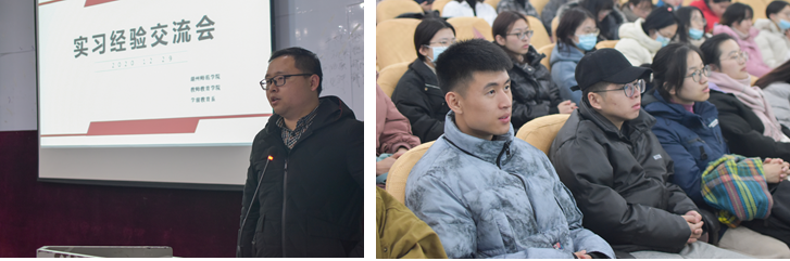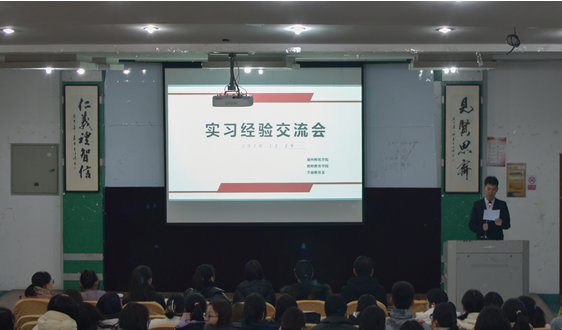 2020年12月29日晚,学前教育专业实习经验交流会于7-203顺利开展。本次经验交流大会,旨在分享实习经验,促进学生专业成长。经验交流由2017级六位优秀实习生代表分别展示,会议由学前教育专业杨沛东主持,学前教育系支部书记俞睿玮出席并致辞。