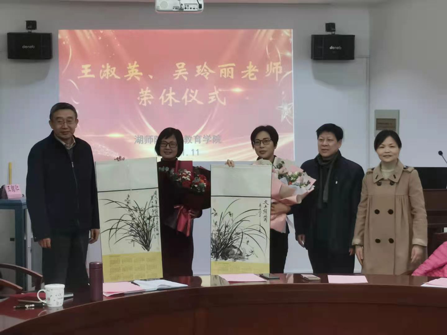 2021年1月11日下午,我院为王淑英、吴玲丽两位老师举办荣休仪式。学院党委书记何阅雄、院长刘世清、副院长李茂森、党委委员学工办主任朱竞和小学教育系部分教师参加仪式。荣休仪式由小学教育系教工支部书记王燕红主持。