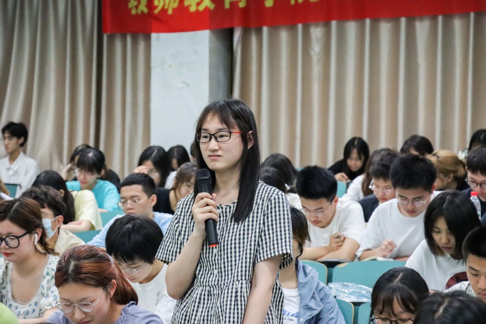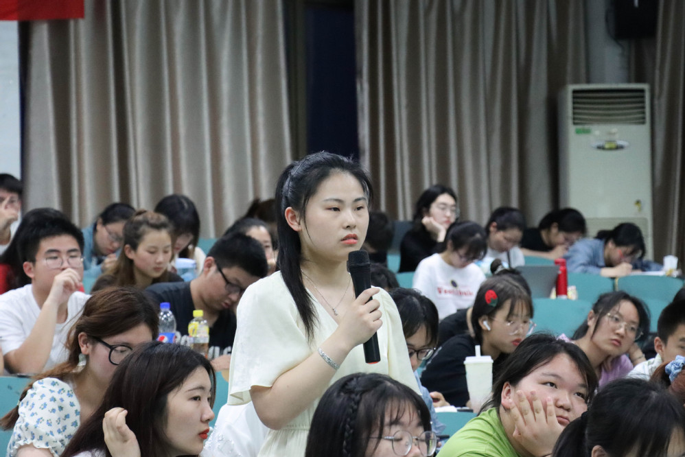 座谈会一开始,由4位省级优秀毕业生分享自己在大学期间学习经验。仇梦婷同学分享了她获得国家实用新型专利的经历并倡导同学们在生活中多观察、在学习中多探索,要学会时间管理,重视职业生涯规划的重要性。胡旭儿同学阐述了巩固师范生基本技能的必要性,她结合学前教育专业相关课程和实践经历提出平常多试多练、认真见习和实习是将教育理论联系教学实践,提高师范生素质的两种很好的方式。周健同学主要和大家讲述了备战考研的一些技巧,她提到影响考研的因素不仅有学业成绩,还有自身的努力程度。王秋龄同学向大家分享了学习的技巧和在工作中体会到的满足感和成功感,并鼓励大家积极参与科研。参加活动的同学纷纷向学姐提出自己存在的困惑,现场交流氛围浓厚,互动频繁。