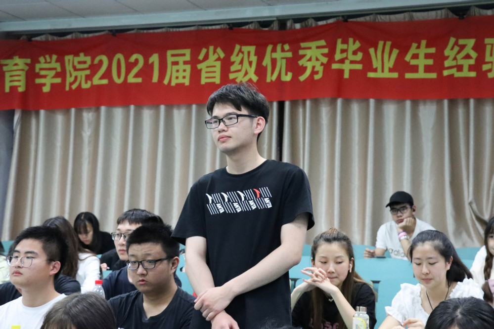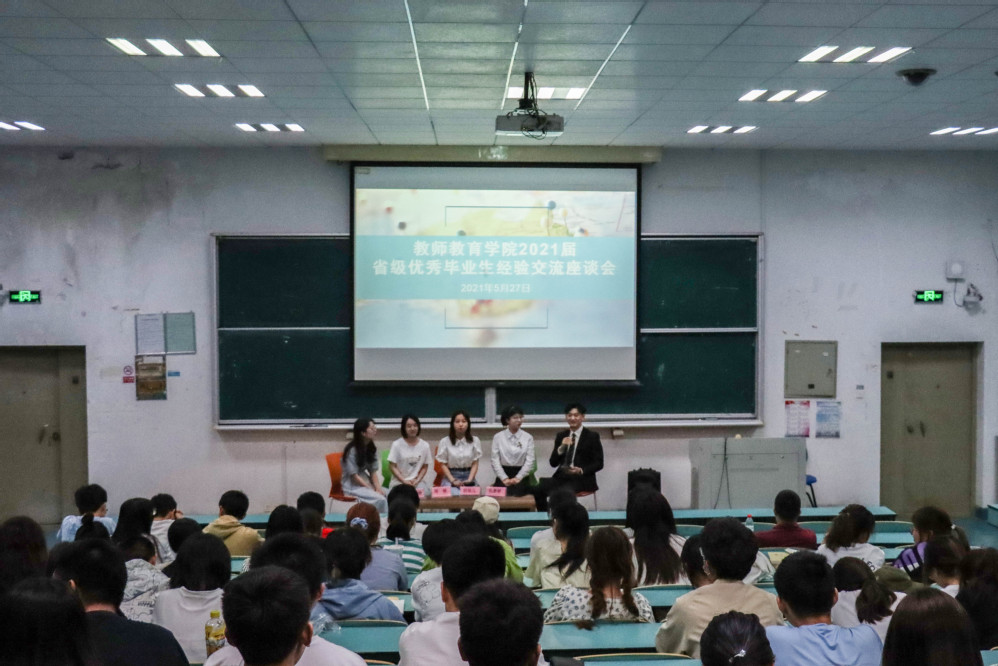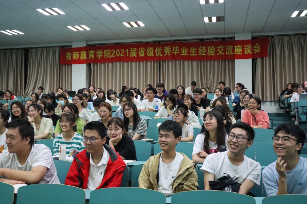 5月27日晚上,js3845金沙线路在西校区7-401开展2021届省级优秀毕业生经验交流座谈会。本次座谈会邀请了4位学院2021届省级优秀毕业生做经验交流,分别是小学教育专业仇梦婷,学前教育专业胡旭儿,教育技术学专业周健,应用心理学专业王秋龄给大家做经验交流。学院2019、2020级各班学生代表共200余人参加本次活动。