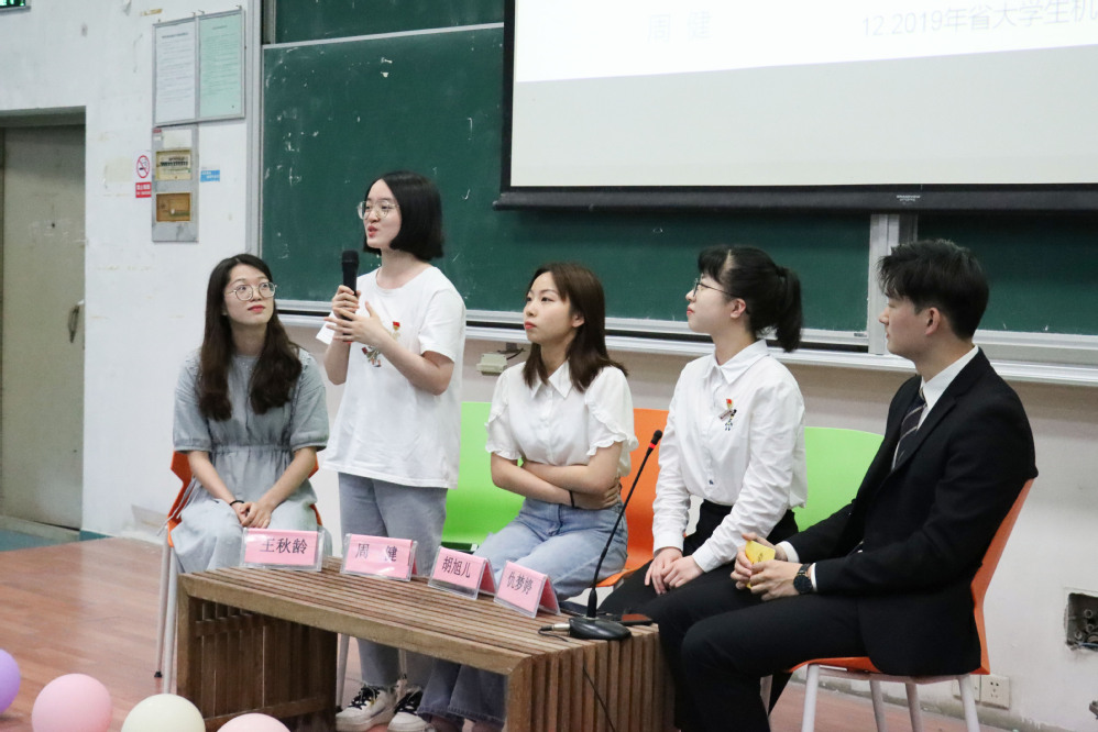 座谈会上,主持人邀请了4位同学和省级优秀毕业生们一起做互动游戏,大一大二的同学还与她们展开了“口语”上的比拼,大家都展示出了扎实的口语能力。最后,省级优秀毕业生向同学们送上寄语,她们向大家表达了殷切的希望和美好的祝福,希望同学们在专业上认真学习,在大学生活中活出自己的风采。