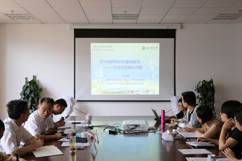 本次启动仪式还邀请了“两山”理念研究院常务副院长王景新教授,就农村基础教育的现实问题和农村调研方法论向研究中心成员做讲座。王景新教授高度赞赏该研究计划,充分肯定其学术和实践意义。他结合自己多年来从事农村研究的经验,整体上介绍了我国农村发展现况,农村教育存在的一些问题,生动举例,讲解了从事农村调查所需的研究方法,号召大家树立立足乡村开展研究的情怀和信念,并同研究中心老师就乡村教育研究进行了深入讨论。