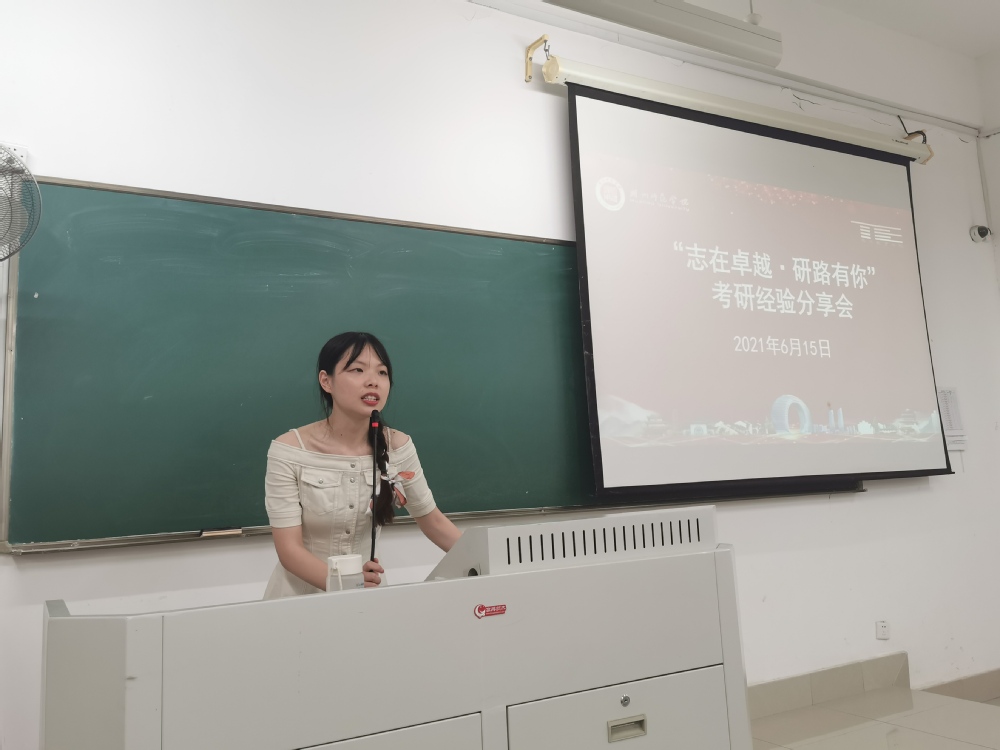吴晓洁学姐从如何选择考研专业、考研学校等方面来指导学弟学妹们正确地走上考研的道路,比如报考院校时可以选择自己户籍所在地的高校。此外,她还提出考研应该要提前开始,大一大二就要打好基础,有关专业课的内容可以向相关专业的学长学姐请教。