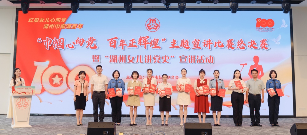 总决赛现场,15名来自市级机关、高校、教育、乡镇、卫生等各行各业的巾帼宣讲员,结合各自工作、生活、学习、经历,为大家献上一场精彩纷呈的党史宣讲盛宴。她们用一个个感人至深的故事带领大家回顾党的百年风雨历程,以饱含深情的演讲抒发了对党和国家的热爱,选手们的宣讲既接地气,又给人以思想的启迪。钱高艺从一株小小的“马兰头”引入,讲述了85后农场主回乡创业,带领村民共同富裕的优秀事迹,展现了社会经济发展水平的不断提升,反映出中国共产党人的奋斗精神和执政担当。她的演讲深情并茂,以小见大,引得现场阵阵掌声。