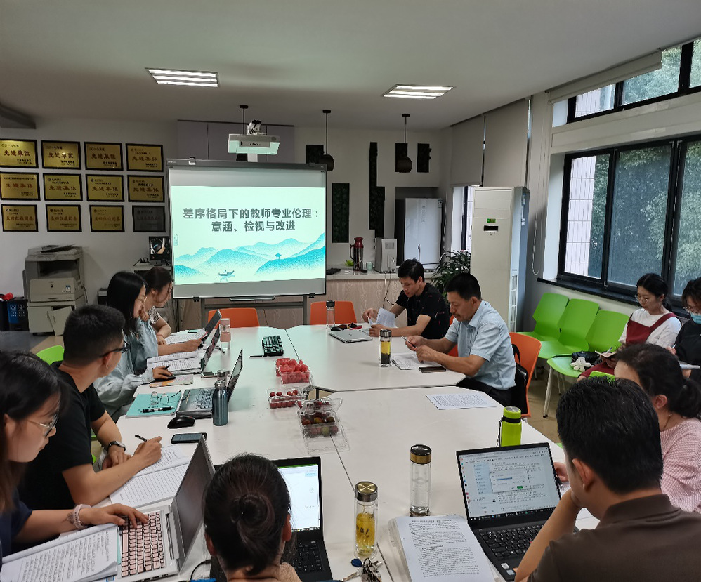 随后中心负责人舒志定教授做总结性点评,并提出进一步的建议:首先,要大量阅读经典文献,正确界定和分辨差序格局、伦理、教师专业伦理和教师职业道德等概念;关于差序格局与教师专业伦理能否关联,这个选题能不能继续进一步研究,首先要探究和分析在教师专业伦理中是否存在差序格局,如果存在,要分析这种教师专业伦理本质上是什么样的,紧接着再谈如何超越这种差序格局。