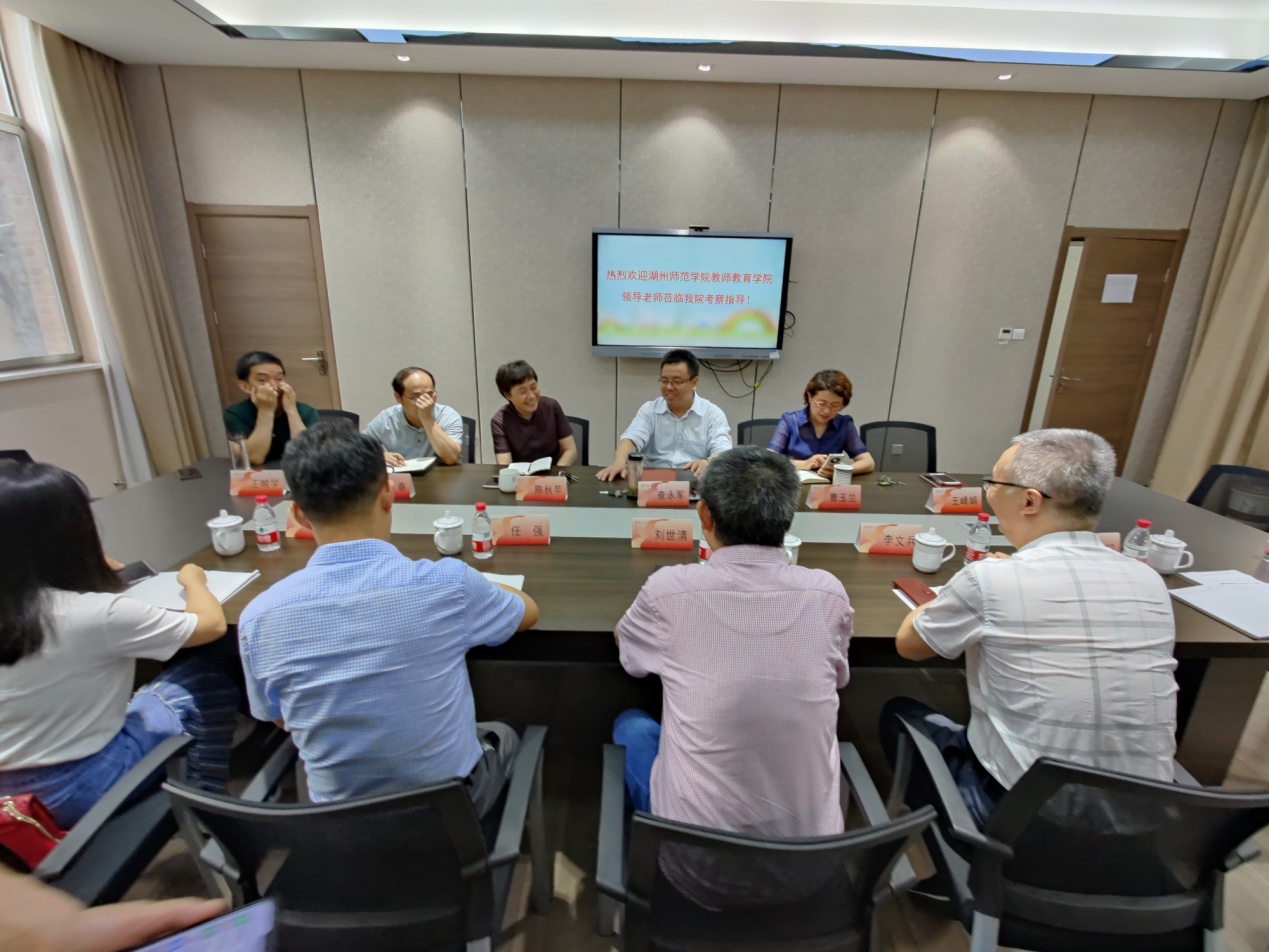 调研组一行受到扬州大学教育科学学院院长查永军、原院长陈秋苹的热情接待。调研讨论会上,查永军院长和我院刘世清院长分别介绍了各自学院的发展定位、专业体系、师资结构概况等,并由相关负责人重点介绍学位点培育和建设过程,双方就学院发展过程中面临的困境与挑战进行了深入的讨论