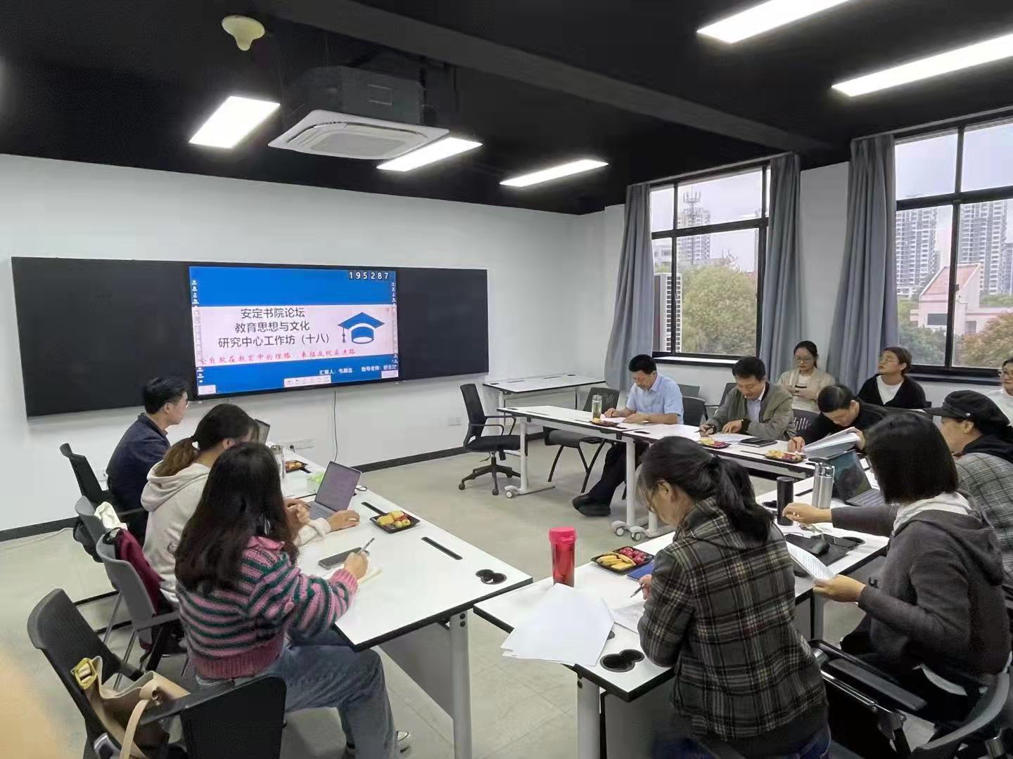 2021年11月4日下午,教育思想与文化研究中心工作坊第十八期学术报告在11-413以线上线下相结合的方式召开。报告主题是“论自欺在教育中的理路、表征及现实进路”。中心负责人舒志定老师,中心成员任强、王贤德、王燕红、牛长松、亢明铭、张震老师,2020级、2021级全体教育学原理专业和部分小学教育专业硕士生参加了此次活动。本次活动的汇报人是2020级硕士生韦恩远,主持人是2020级硕士生陈泓睿。