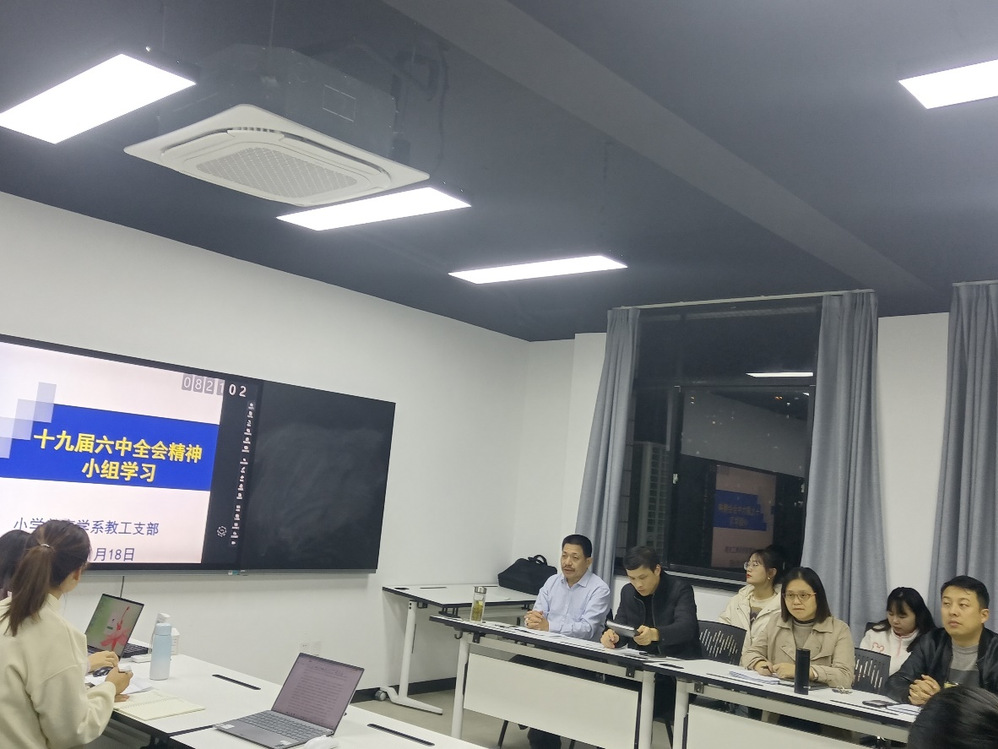 1118日晚,舒志定副校长与部分小教师生齐聚11-413,围绕刚刚闭幕的十九届六中全会,聚焦会议内容、会议精神分享学习心得和体会,此次学习会由小学教育学系教工党支部书记王燕红主持。