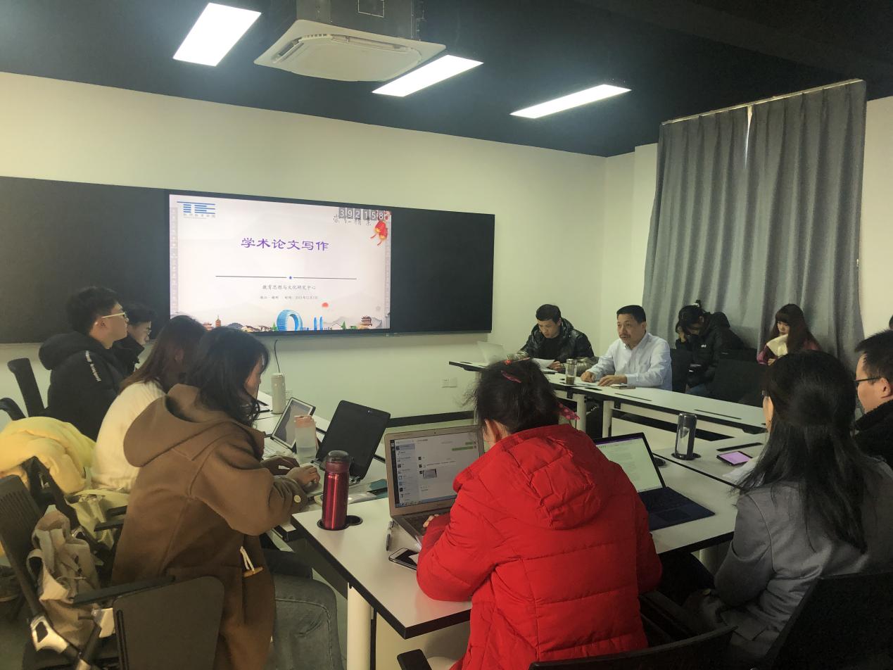 2021年12月2日下午,教育思想与文化研究中心工作坊第二十期学术活动在11-413召开,活动主题是“学术论文写作”。中心负责人舒志定老师,中心成员牛长松、王燕红、陆韵、张震、王贤德老师,2020级、2021级全体教育学原理专业和部分小学教育专业硕士生参加了此次活动,2021级硕士生郑楠主持。