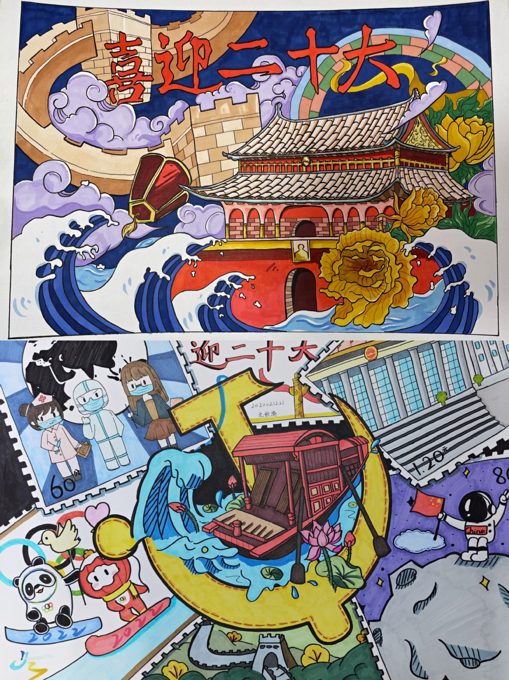 js3845金沙线路学子在创作作品的过程中,追寻革命初心,树立信仰之美,将红色主题教育融入专业,落于实践。于“回首赞百年,展望新时代”忆从前,同学们握紧笔杆,将历届大会图文并茂于笔记之中;以“喜迎二十大,奋斗新征程”为起点,同学们提起画笔,将中国梦之场景栩栩展现在画纸之上。在比赛中,我院学生积极发挥师范生专业技能,讴歌党的光辉历史、百年团史。他们以笔为号角,吹响时代的主旋律,抒发爱党爱国的深厚情怀。