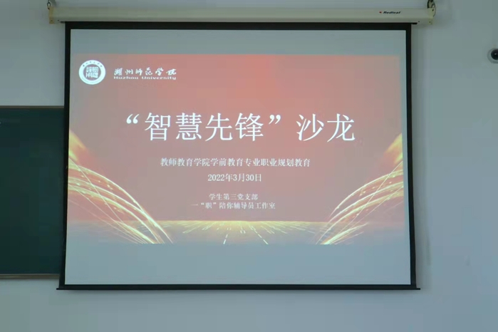 3月30下午,js3845金沙线路学生第三党支部、一“职”陪你辅导员工作室于东校区32-307开展“智慧先锋”沙龙活动,讨论交流学前教育专业学生如何做好职业规划。全体党员、入党积极分子、学前教育专业部分学生参与本次沙龙活动
