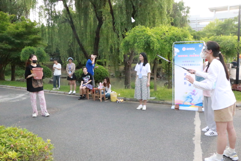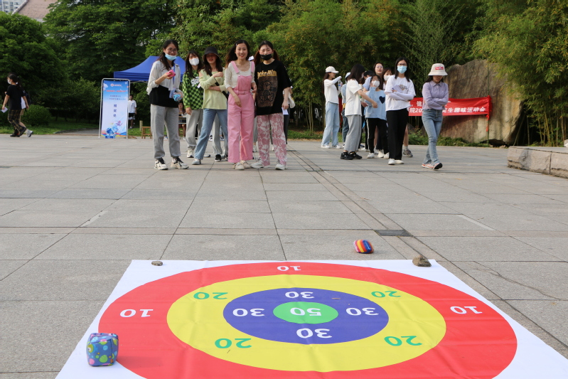 下午场于16:00在胡瑗广场拉开序幕,共有5个趣味运动项目,分别是:巧投沙包、三心二意、趣味篮球、盲人发球、人肉滚雪球。每一个项目都将竞技与娱乐相结合,鼓励同学积极参与、大胆尝试、放松身心,每位参赛同学都表现出了极佳的运动状态,正可谓“恰同学少年,风华正茂”。我院教师也参与到本次活动中来,与同学们共同运动、感受趣味。活动中,个人赛妙趣横生,同学们沉浸在运动的欢乐中;团队赛热闹激昂,选手们努力追求着更好的合作。高大庄重的胡瑗塑像,仿佛绘满了青春的色彩。