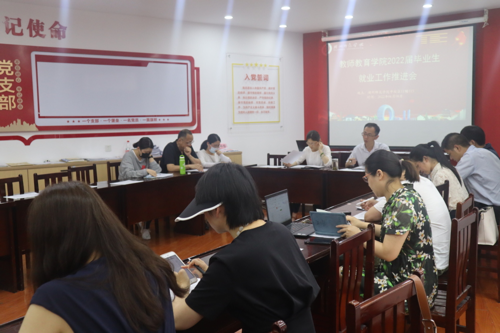会议首先由院党委副书记朱竞分析了师范专业的就业形势,并通报了2022届毕业生就业数据。随后,各毕业班班主任逐一汇报了本班学生就业情况,重点就未就业、难就业、不打算就业学生情况进行了说明,并分析了原因。与会人员围绕当前学生就业情况进行了充分讨论,并提出拓展就业岗位、搭建就业平台、鼓励多元就业、帮助就业困难学生等举措。
