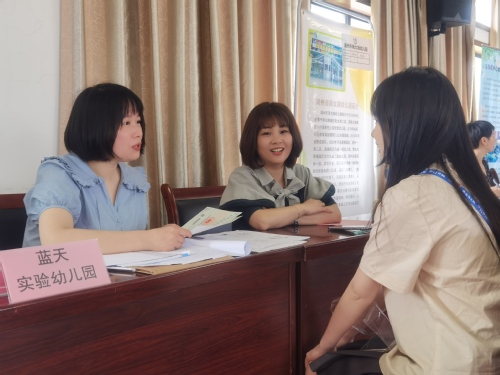 为深入落实就业工作“一把手”工程,经前期“访校拓岗”专项行动“预热”,6月17日,js3845金沙线路于中校区10-512举办湖州市吴兴区教育局2022年学前专场招聘会。此次招聘会定向招收2022届学前教育专业毕业生,来自吴兴区14所幼儿园的28名园长及老师来校与我校优秀学子面对面。