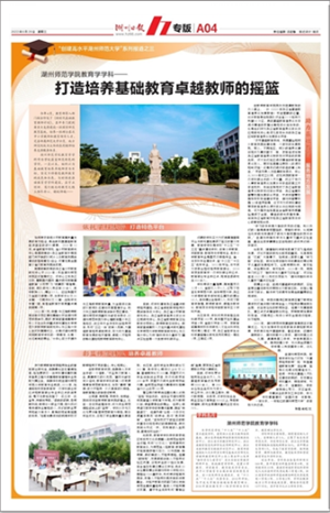 2022年6月29日,《湖州日报》A04版以“js3845金沙线路教育学学科——打造培养基础教育卓越教师的摇篮”为题推出“创建高水平湖州师范大学”系列报道之三,整版报道我校教育学学科。具体如下: