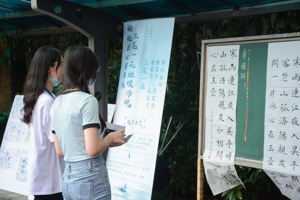 此外,通过“园丁杯”作品展览和人气奖评选,让新生欣赏“三笔一画”作品,同时投票选出心中最优秀的作品。借此方式让初入学校的师范生提前体验到学院的传统活动——师范生文化节。学生在一笔一划,一撇一捺中感受汉字的魅力,引导新生注重提升汉字书写能力,未来以端正隽雅、行云流水之笔法传授学识。