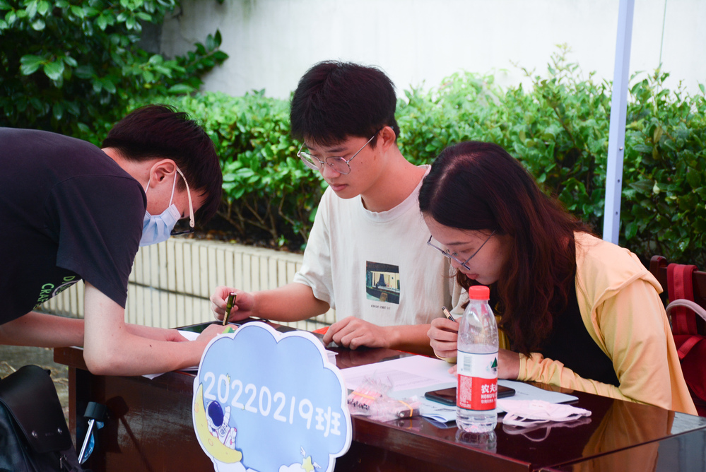 新生报到后,在“学院热词”主题签名墙上庄重地写下自己的名字,并与其合影留念,定格这段美好的开学记忆。学院还设计了“家校相连”主题地图墙,每位新生可以DIY一张专属的“入学车票”,一张张车票写上新生的名字,以家乡为始发站,以湖州师院为终点站,系起红绳连接家校,寓意着来自五湖四海的新生最终汇聚一堂,融入湖州师院大家庭。