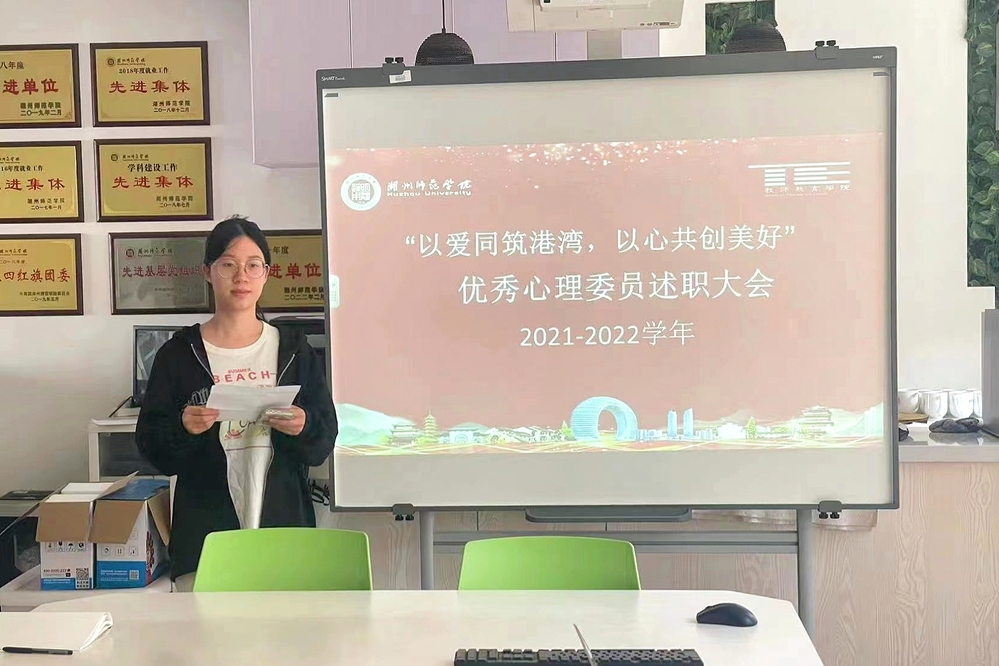 近日,为树立大学生心理健康教育工作典型,促进心理健康教育有效开展,鼓励和表彰优秀心理委员,我院特开展主题为“以爱同筑港湾,以心共创美好”2021-2022学年优秀心理委员及优秀心理学生干部的评选活动。来自学院不同年级的二十余位心理委员参加此次竞选活动,学院心理健康教育方面负责老师、院学生会心理部学生干部参加述职评选会议。