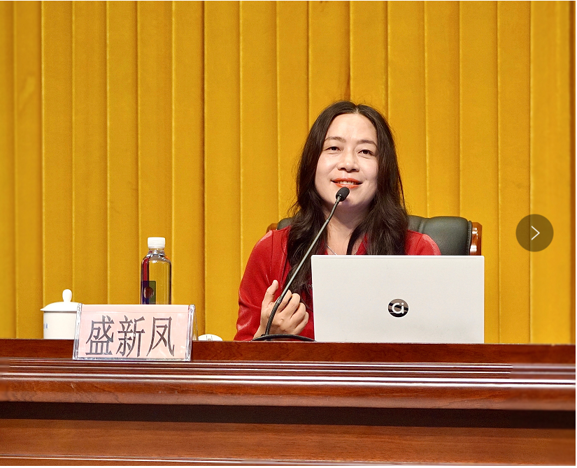10月28日晚,js3845金沙线路“大先生”讲堂(第二讲)在东校区大会堂举行,本次活动邀请湖州市教育科学研究中心小学语文教研员、特级教师盛新凤做客讲堂。js3845金沙线路党委书记何阅雄主持,学院党委副书记朱竞、2022级新生班主任、全体辅导员及2022级新生共同聆听了报告。