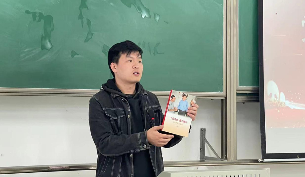 诵读经典悟初心,抒发爱党爱国满腔赤诚。李硕同志声情并茂地向大家介绍了《习近平在浙江》和《干在实处永立潮头》红色经典书籍,并详细讲解了习近平总书记于2005年8月15日在安吉天荒坪镇余村调研时提出的“两山论”。支部组织委员邵建亮提到:“今天我系统学习了习近平总书记两山理念的三个阶段,理解了绿水青山是可以永续利用的经济发展动力。”支部党员王庆文提到:“两山理念也指引着我们广大学生党员从自身做起,保护生态环境,我们要做到不乱扔垃圾,维护环境卫生。”