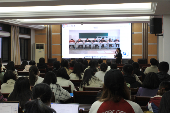 讲座伊始,指导老师李旎向同学们展示了试讲、说课、结构化三种面试的形式,她从身临考场、考官角度、着装礼仪、平稳心态四个方面向同学们介绍了无生试讲。随后,她细致地讲述了考试的流程、备考准备与要求、评分标准,并且用生动的示范向同学们展示了不同学科该如何导入课堂的方法。她还提出了试讲练习的五大方式和备考的六大注意事项,便于同学们在备考中寻找方向。接着,她从职业认知、人际沟通、应急应变、组织协调、教育综合五个类型的考试题目讲述结构化面试。通过结合真题,具体向同学们说明答题的模式,并且针对观点、逻辑、表达、演技四个方面提出了建设性的意见。最后,她对在场的毕业生表达了衷心的鼓励和祝福。