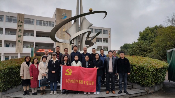 11月17日下午js3845金沙线路小学教育学系教工党支部开展“学习二十大·凝聚奋进力量”主题党日活动,与党建联建单位吴兴区埭溪镇上强小学党支部开展党的二十大精神学习心得交流,进行“开展乡情教育·培育绿行少年”主题研讨活动,到吴兴区埭溪镇疆村词学馆、王启民楷模馆进行实践学习活动。党支部全体党员参加本次主题党日活动。