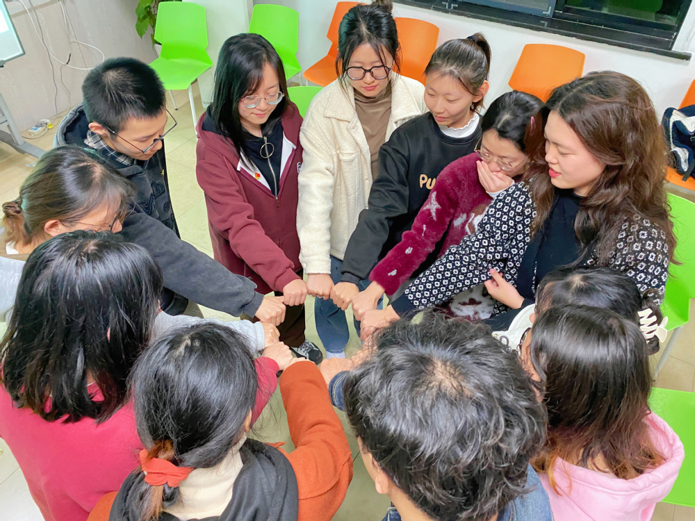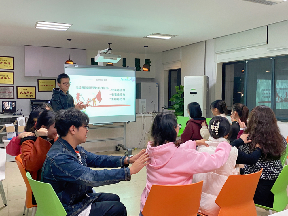 接着,学生党员代表王李渊带领支部党员展开心理游戏——“大风吹”,通过模拟自然环境的风、雨、雷、电带动党日活动的活跃氛围,拉近彼此间的心理距离,并号召全体党员在面对危机、困难时,团结起来,将力量拧成一股绳,劲往一处使。