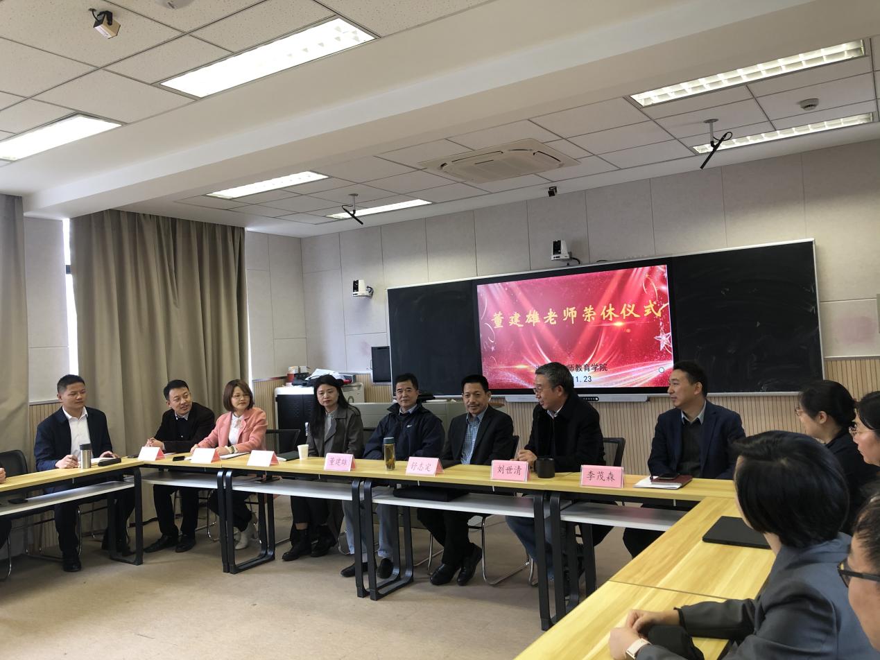 近日,学院为董建雄老师举行了温馨的荣休仪式。仪式由学院党委书记何阅雄主持,副校长舒志定、湖师附小总校长李成芳、学院全体班子成员、小教系全体教师共同参加。